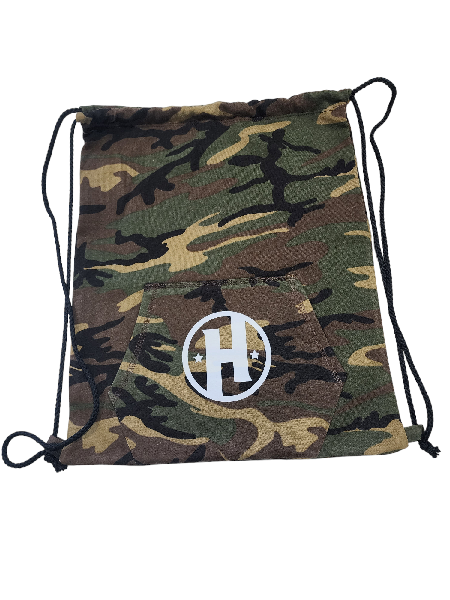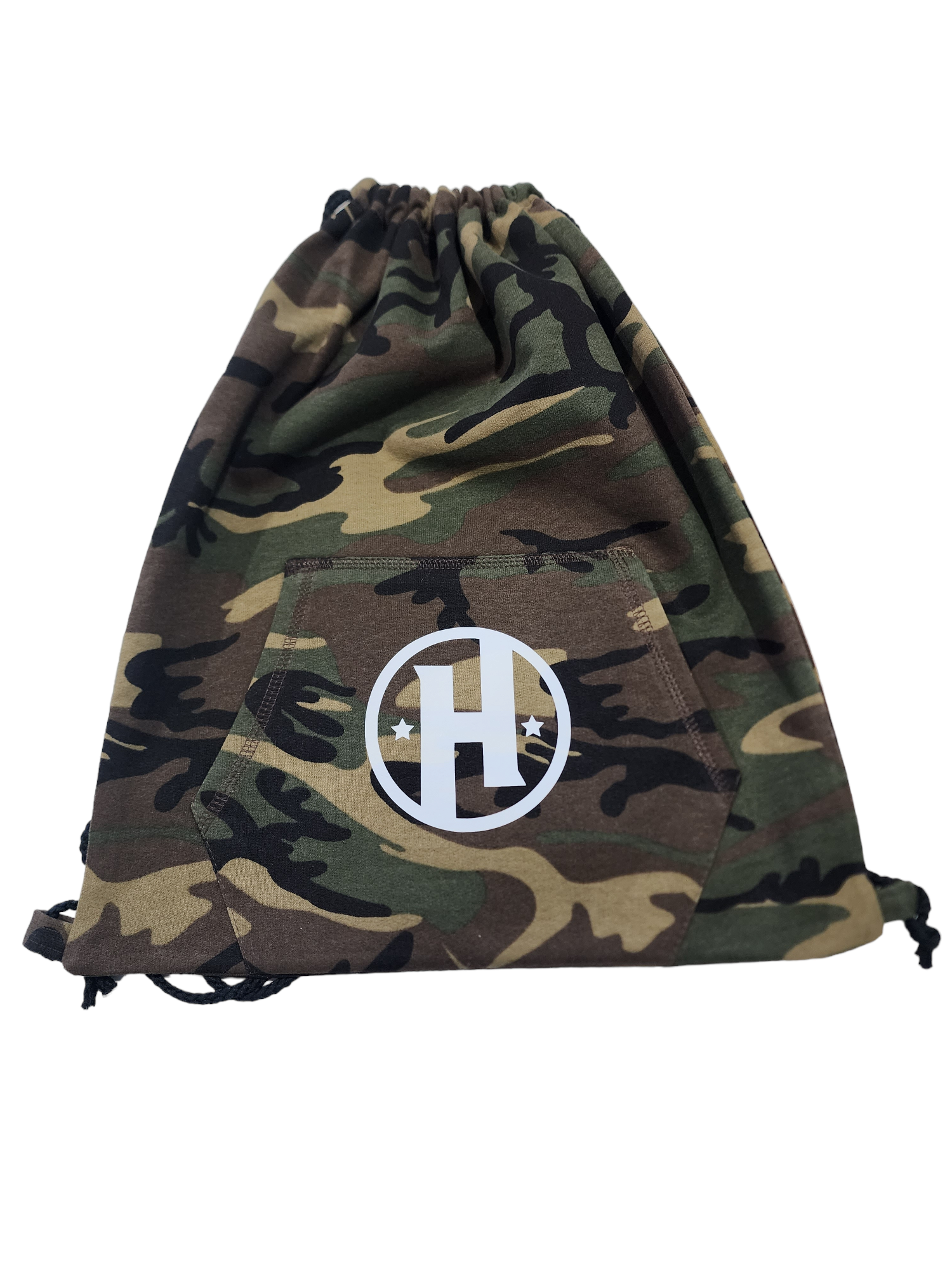 Core Fleece Sweatshirt material creates a laid-back cinch pack, complete with a front pouch pocket.